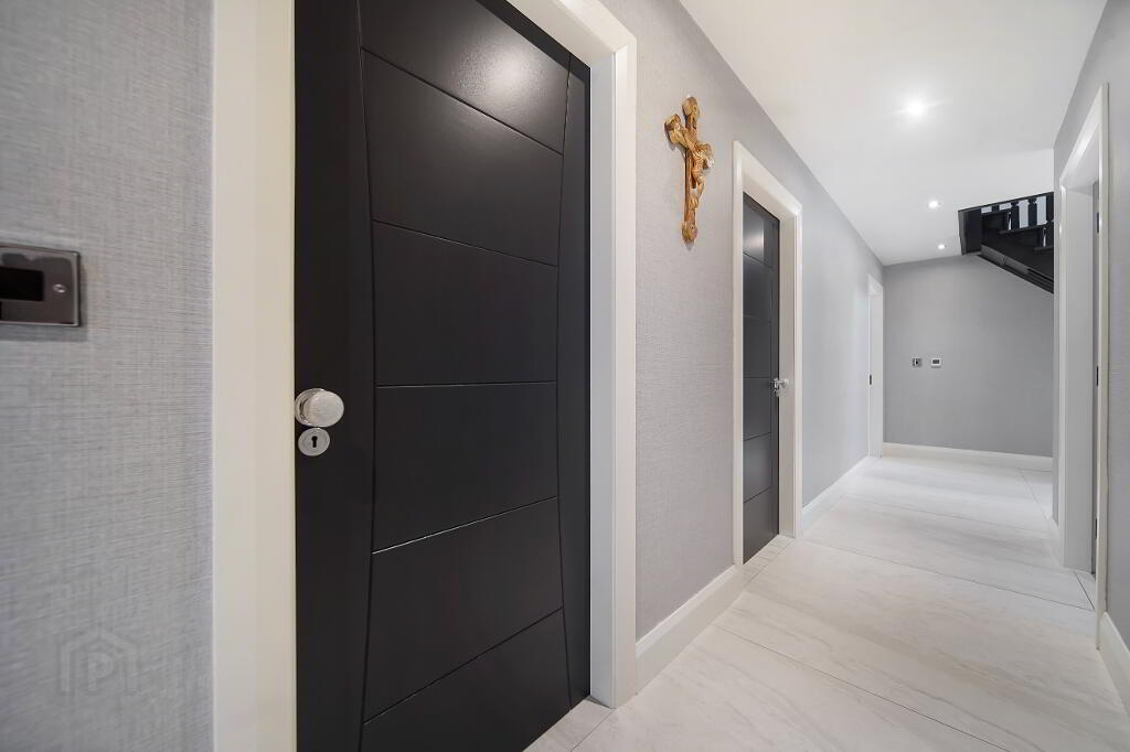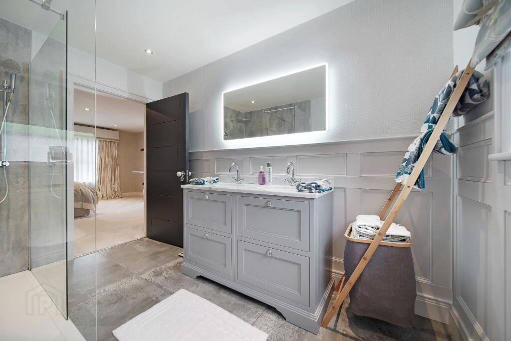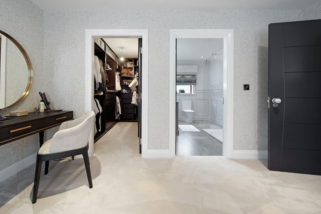 MASTER BEDROOM: 4.78m x 4.17m Fitted units ,carpet flooring, ENSUITE:3.28m x 2.26m White suite with vanity unit, wc, walk-in shpwer, wall & floor tiles, wall panelling