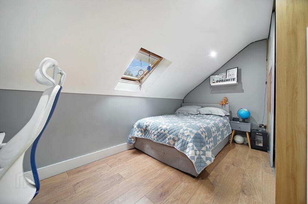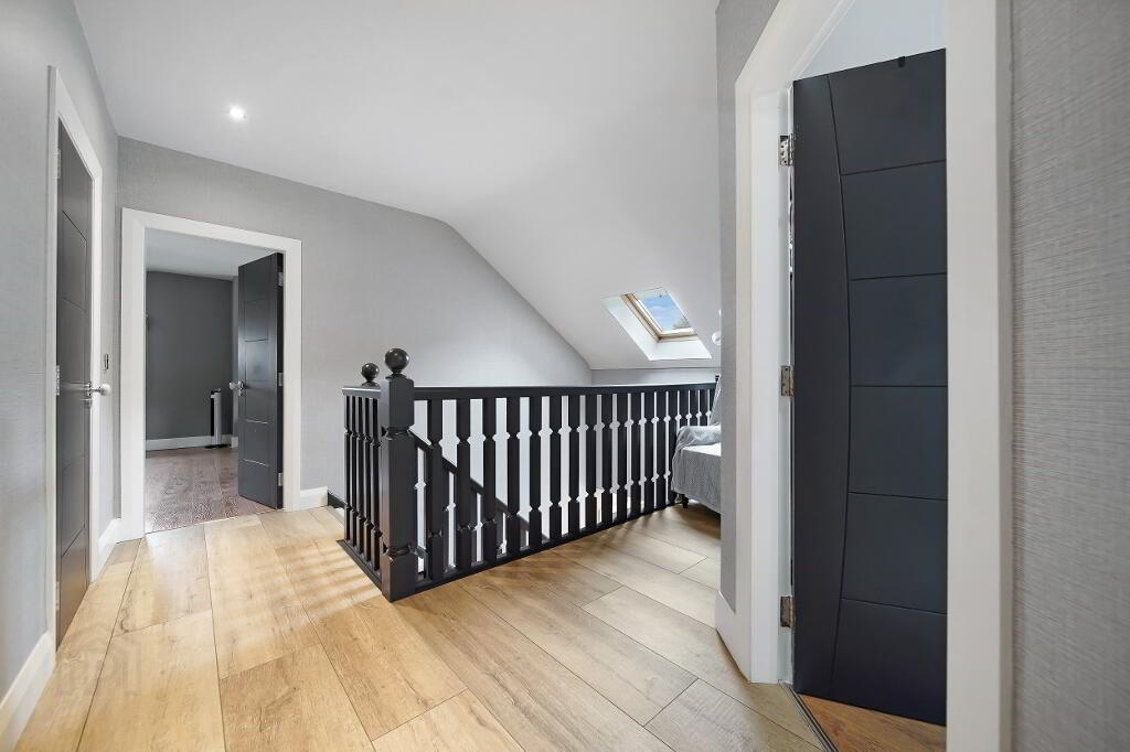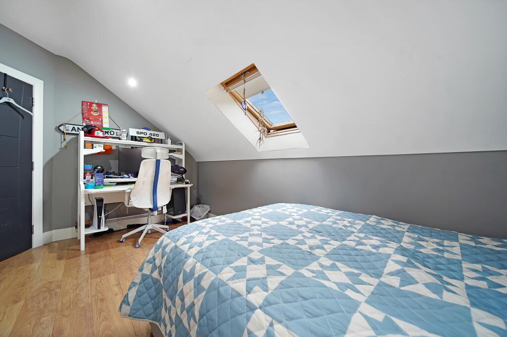 BEDROOM 5: 5.66m X 4.14m Skylight window, laminate flooring, Juliet balcony