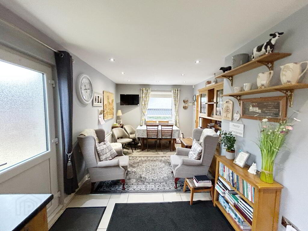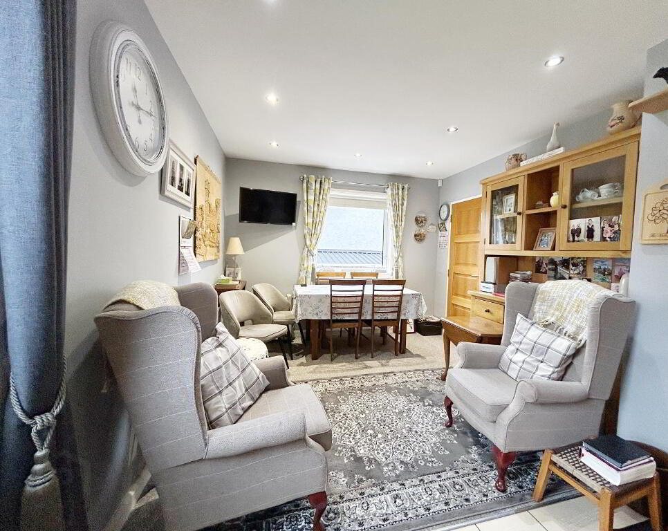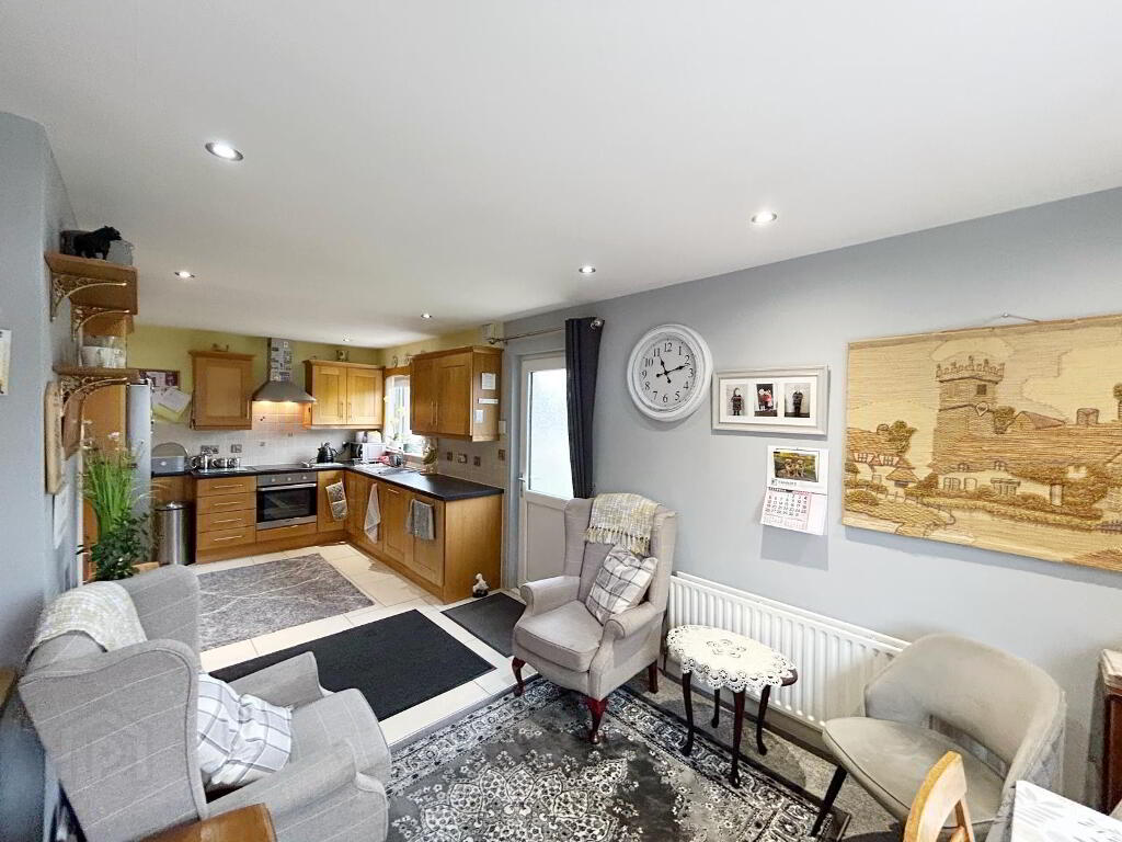 KITCHEN / DINING & SITTING AREA: 23’10’’ x 10’2’’ (wp) High & low level fitted units, laminated work surface, integrated appliances, recessed lighting, floor tiles