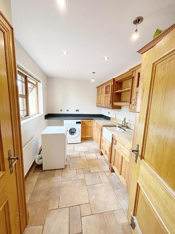 UTILITY ROOM: 4m (lp) x 2.3m (wp) Fitted high and low level units, Belfast sink unit, provision for washing machine and tumble drier, tile floor