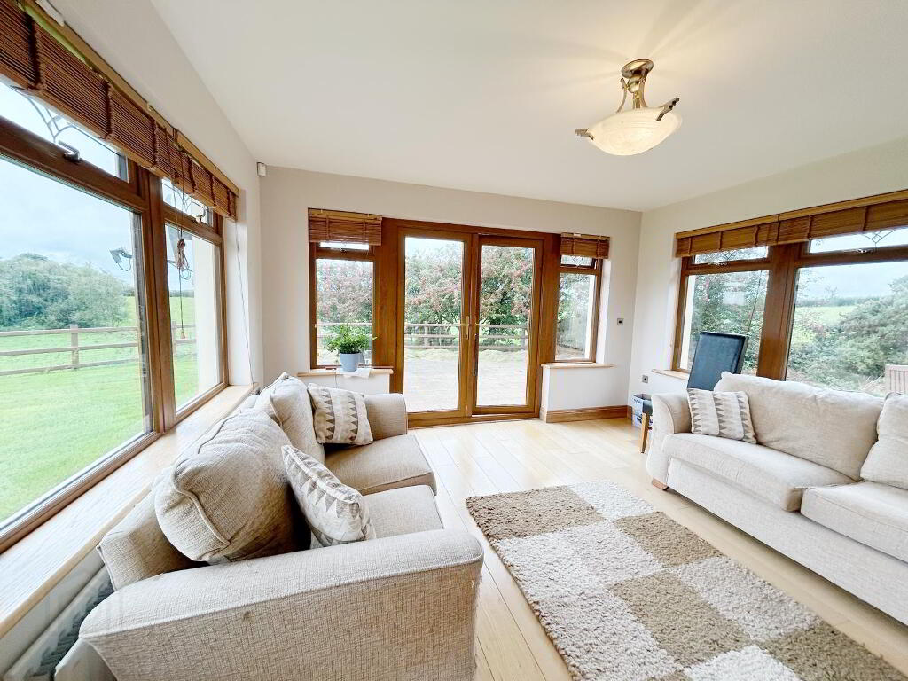 SUN ROOM: 4m (lp) x 4 (wp) double patio doors to garden, doors to kitchen area & lounge, tile floor