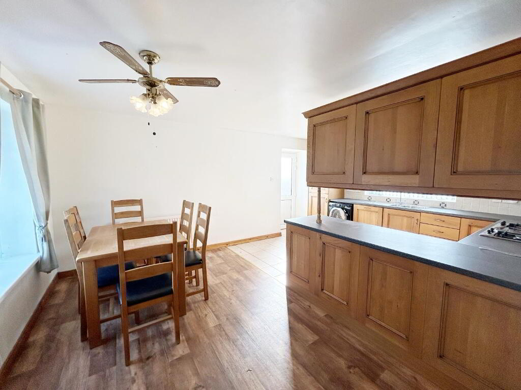 Kitchen / Dining Area – 5.45m (LP) x 3.55m (WP) Fitted shaker-style oak kitchen with high and low-level units, laminated work surfaces and tiled upstand.