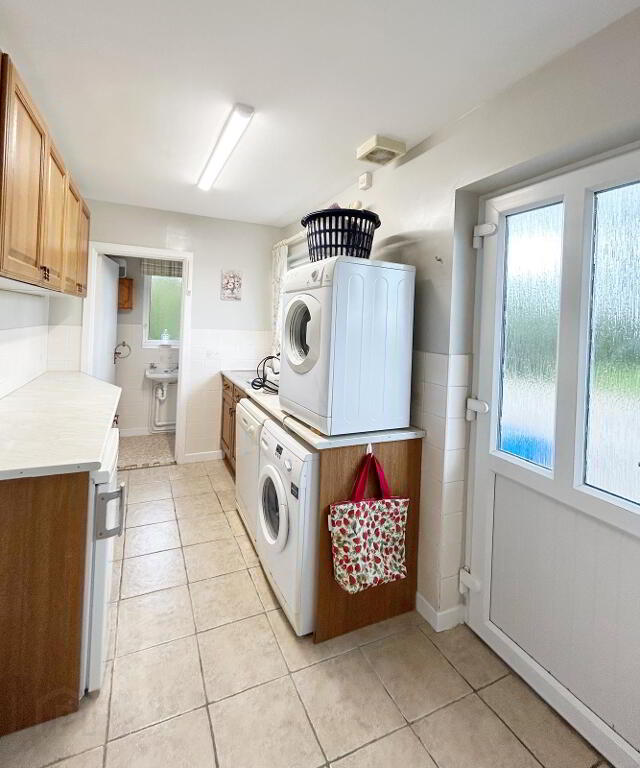 UTILITY: 3.55m x 2.1m Fitted high and low level units with stainless steel sink unit , provision for appliances, rear door, door to garage, tile floor