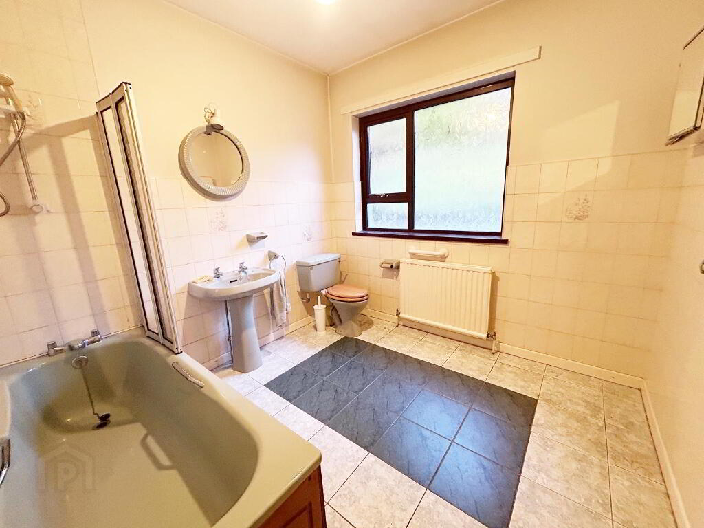 BATHROOM: 2.65m x 22.65m Coloured suite with level shower over (electric),wc, whb,wall & floor tiles