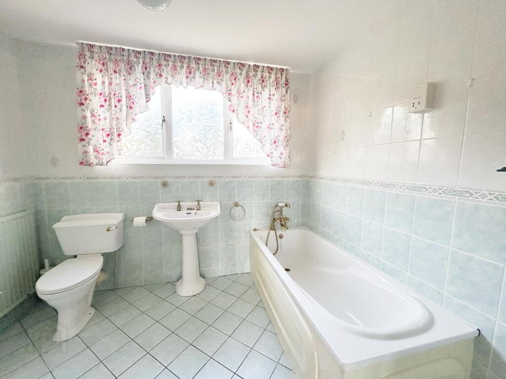 BATHROOM: 2.8m x 2.35m White suite with bath & separate quadrant shower, wc, whb, wall & floor tiles
